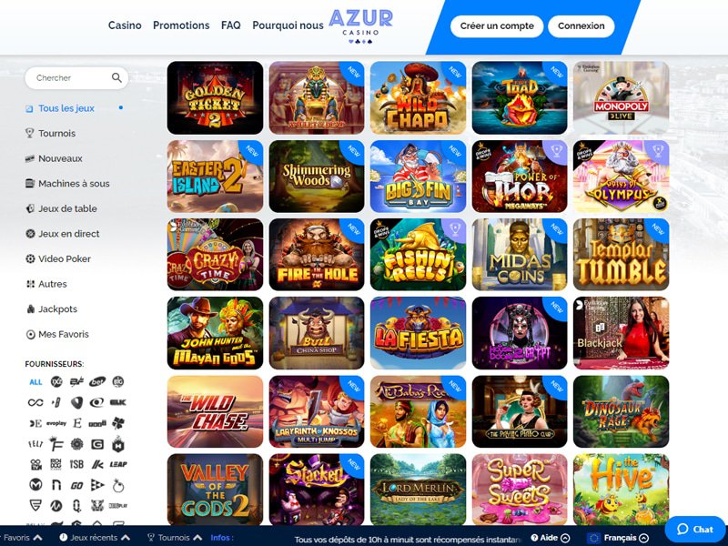 L’exploration des machines à sous révèle une grande diversité de thèmes et de fonctionnalités, allant des slots classiques aux dernières nouveautés avec des jackpots progressifs. Nous avons également analysé l’espace «casino en direct», qui propose une expérience immersive avec de vrais croupiers. Les jeux de table comme le blackjack, la roulette ou le baccarat sont présents en de nombreuses variantes. Ce que nous avons appris, c’est qu’Azur Casino collabore avec des éditeurs de logiciels réputés, ce qui garantit des jeux équitables et des graphismes de haute qualité.